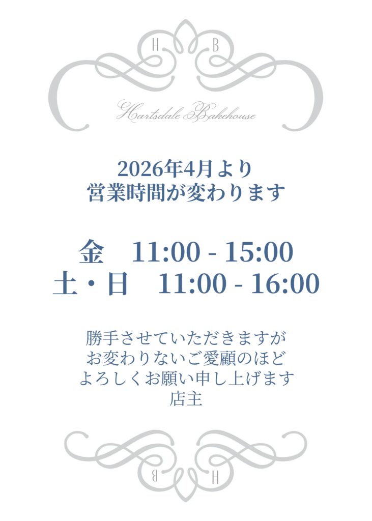 いつもハーツデールベイクハウスをご愛顧いただきまして