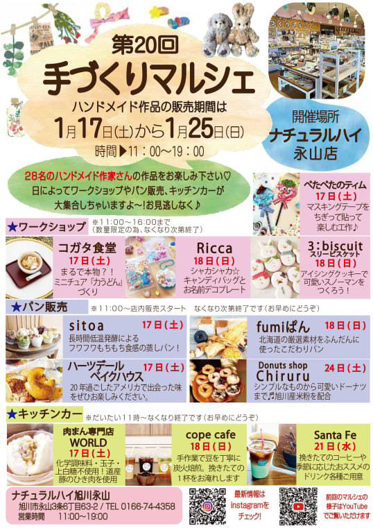 ナチュラルハイ永山店さんの人気イベント「手作りマルシェ」に17日(土)、